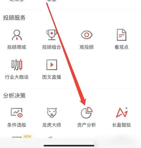 在弹出的功能菜单中选择"资产分析",即可查看详细的资产情况