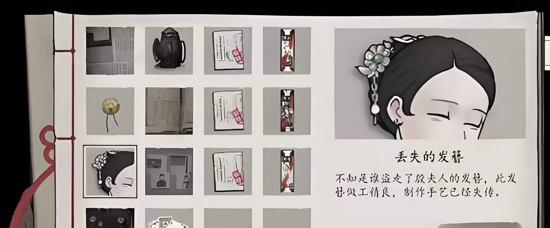 这位角色首次登场是在游戏的第四章。当你遇见她时,需要在相关谜题中选择"讣告"选项。之后的任务是解锁史实志的记录,这项完成后会发现殷柔的尸体。这时你需要对尸体及周边环境展开仔细勘察。