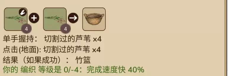 制作小贴士:当编织等级为0/-4时,制作速度还能提升40%哦!