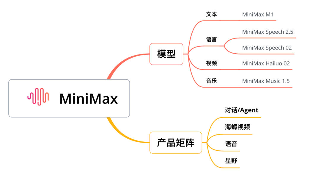 MiniMax从早期便押注多模态路线,模型层被明确划分为文本、语言、视频、音乐,在“产模一体”的思路下,接连生长出了海螺视频、星野、Agent等产品,形成了现在的产品矩阵。