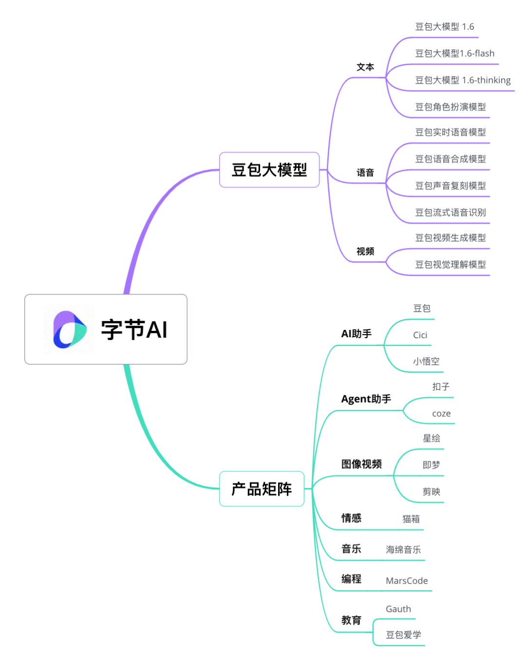 上面MiniMax的这张图让人似曾相识,当模型和产品层扩大后,就能得到一张字节AI的版图。