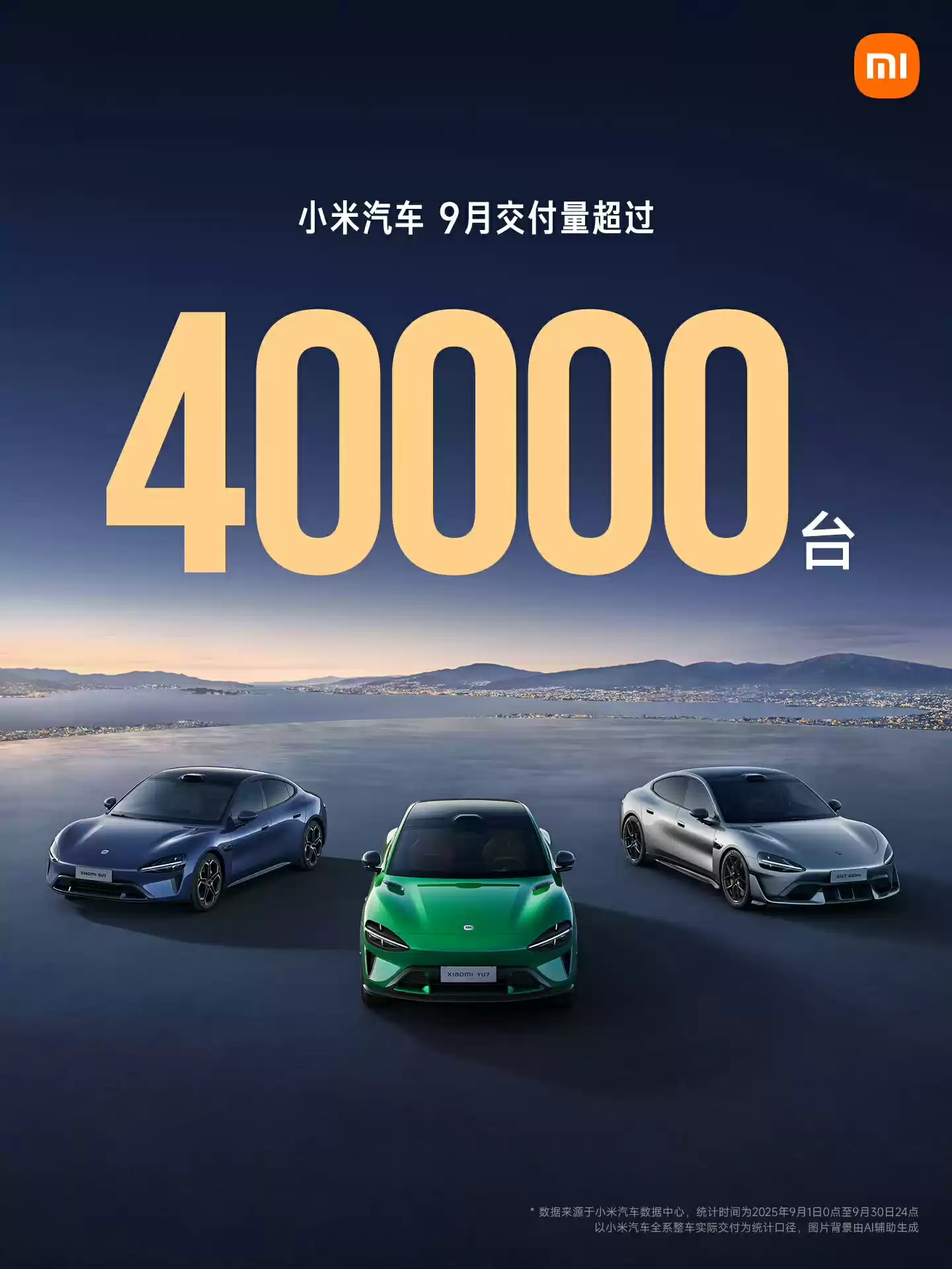 小米汽车9月销量突破4万辆,10月1日正式公布喜报