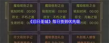 总之,旧日圣城每日签到优先级的合理规划,是玩家在游戏中稳健发展的秘诀。按照上述优先级进行签到,玩家就能在有限的时间内,最大程度地利用签到福利,让自己在这个奇幻的旧日圣城中,一步步走向强大与辉煌。