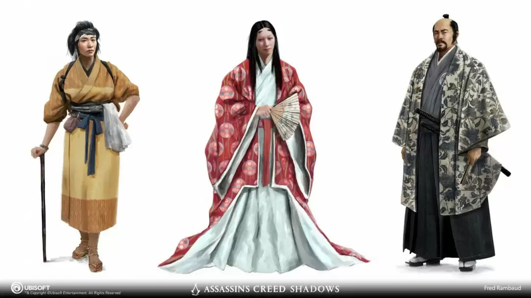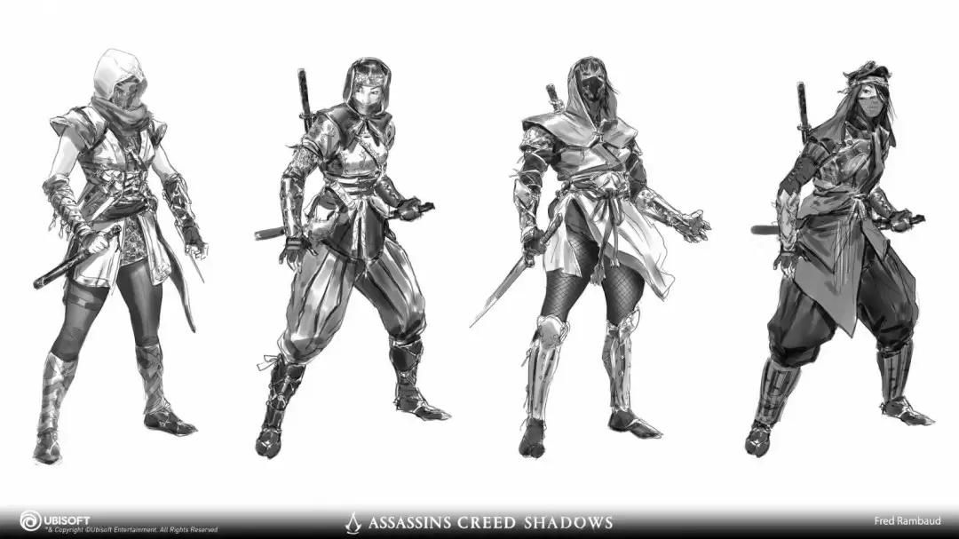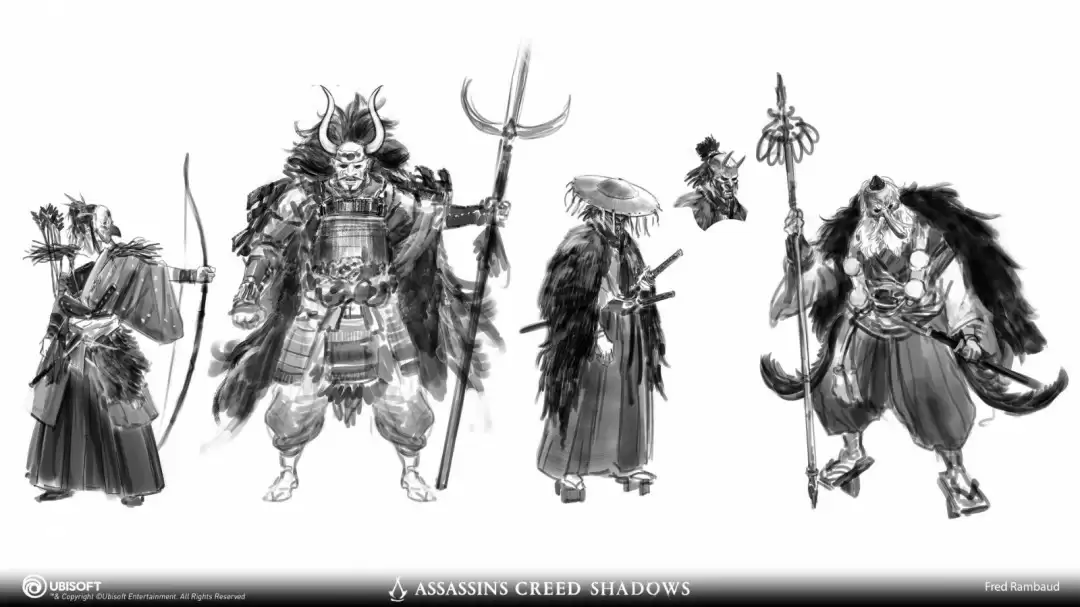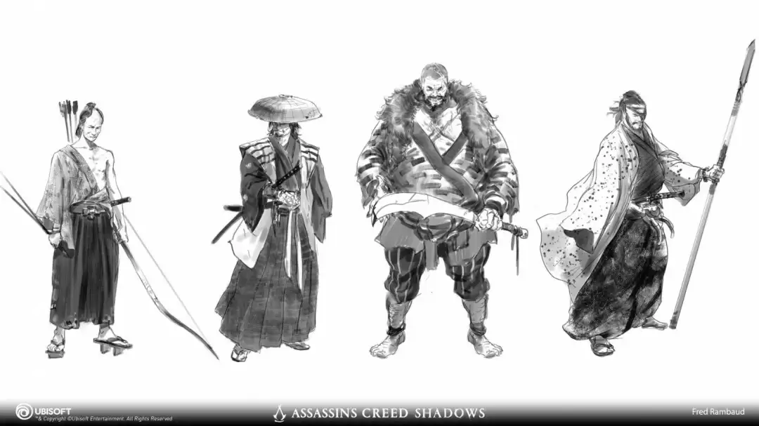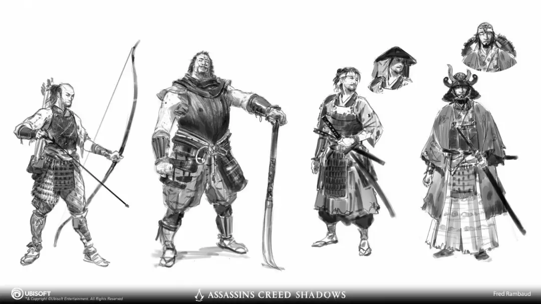 《刺客信条:影》角色设计师Fred Rambaud最新公布了一组震撼的概念原画,为玩家们揭开了游戏主要角色的神秘面纱。这些精心打磨的设计作品展现了独特的视觉风格,现在就让我们一睹为快!