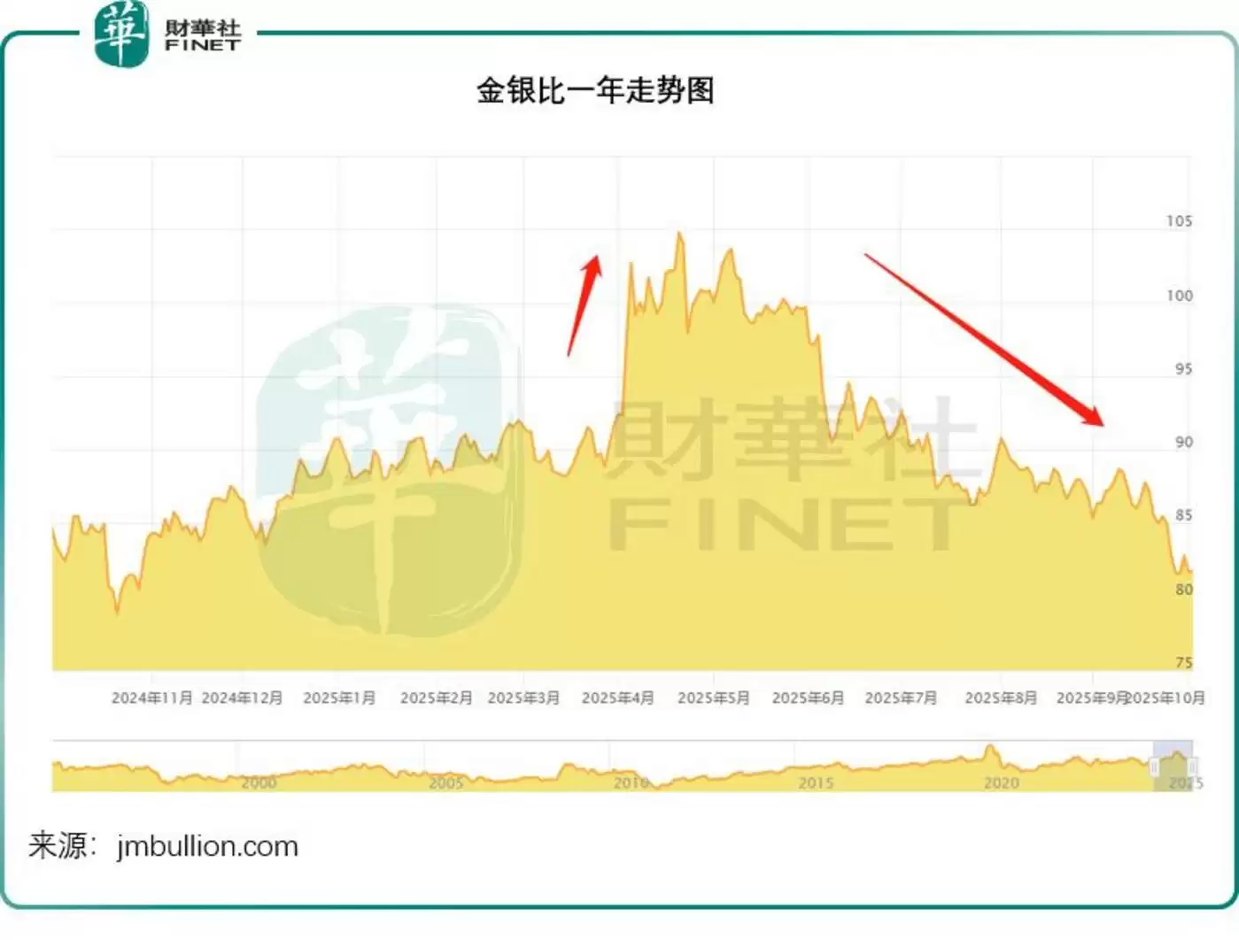 但随着银价攀升,金银比已持续下降,当前已接近80的临界点。