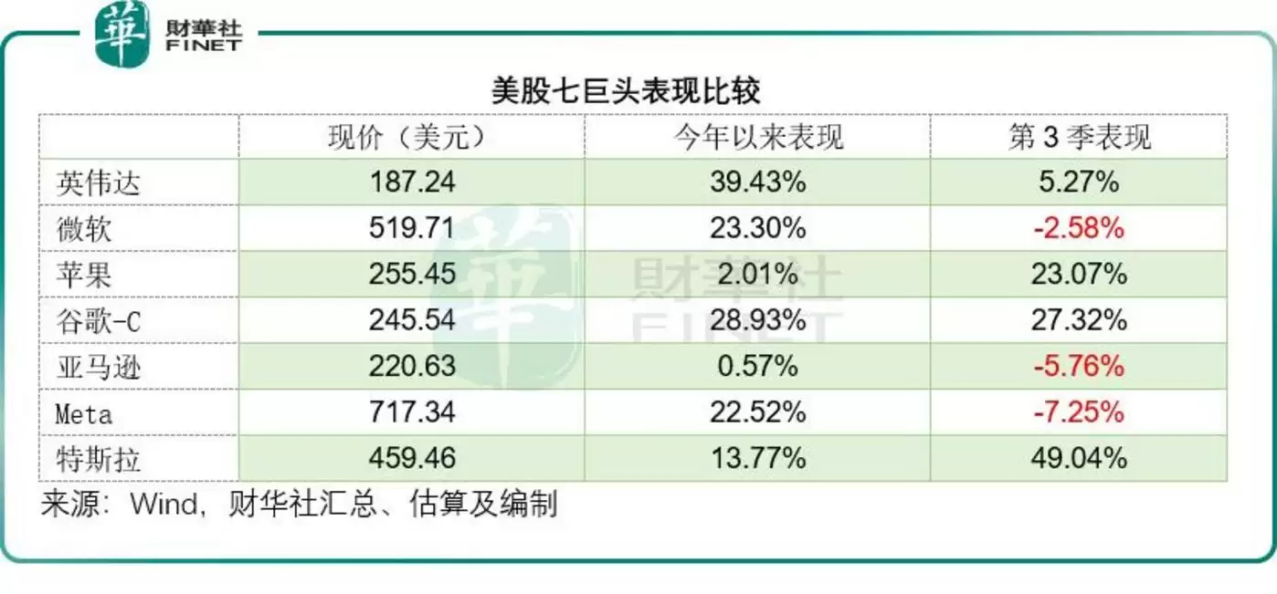 另一方面,苹果(AAPL.US)和谷歌-C(GOOG.US)于第3季开始追落后,前者或因为iPhone新品表现预期向好,后者则因为其AI云表现超预期。