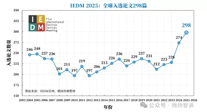 IEEE国际电子器件会议(International Electron Devices Meeting, IEDM)是半导体器件领域的全球顶级学术会议,被誉为该领域的“奥林匹克盛会”。近日,2025年IEDM大会入选论文名单正式公布,论文总数再创新高。本文将通过关键数据深度解读全球研究格局。