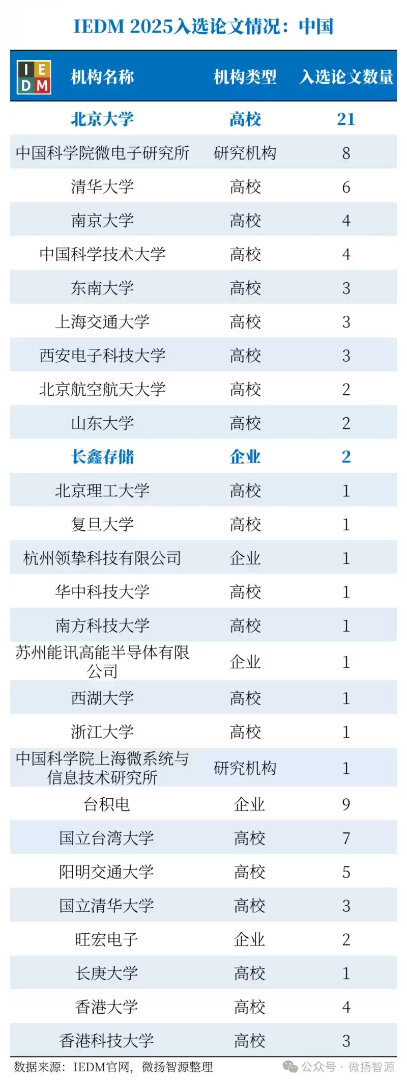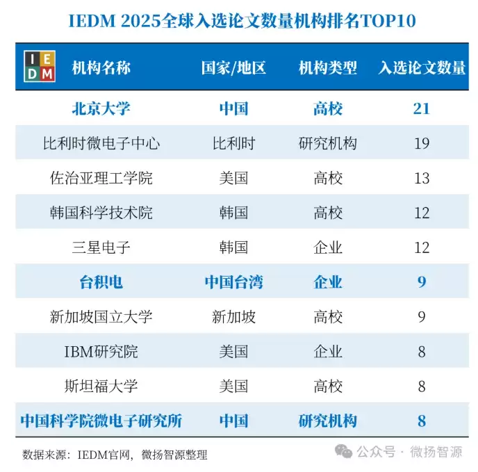 【首发|IEDM 2025放榜】北京大学以21篇论文蝉联全球第一,长鑫存储领跑产业界
