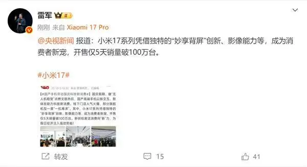 小米17销量5天破百万,Pro Max首日刷新两项纪录