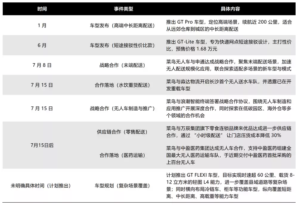 面对上述矛盾,菜鸟试图通过技术手段实现降本增效。例如,2025年至今,菜鸟持续推出了适配多元场景的无人车,并积极拓展快递以外的场景。国内某无人车企业推广负责人刘杨(化名)透露,2025年无人车售价将显著下降,且快递行业仍被视为无人车应用的核心场景。但其大规模推广的关键,仍在于能否算清“成本账”。