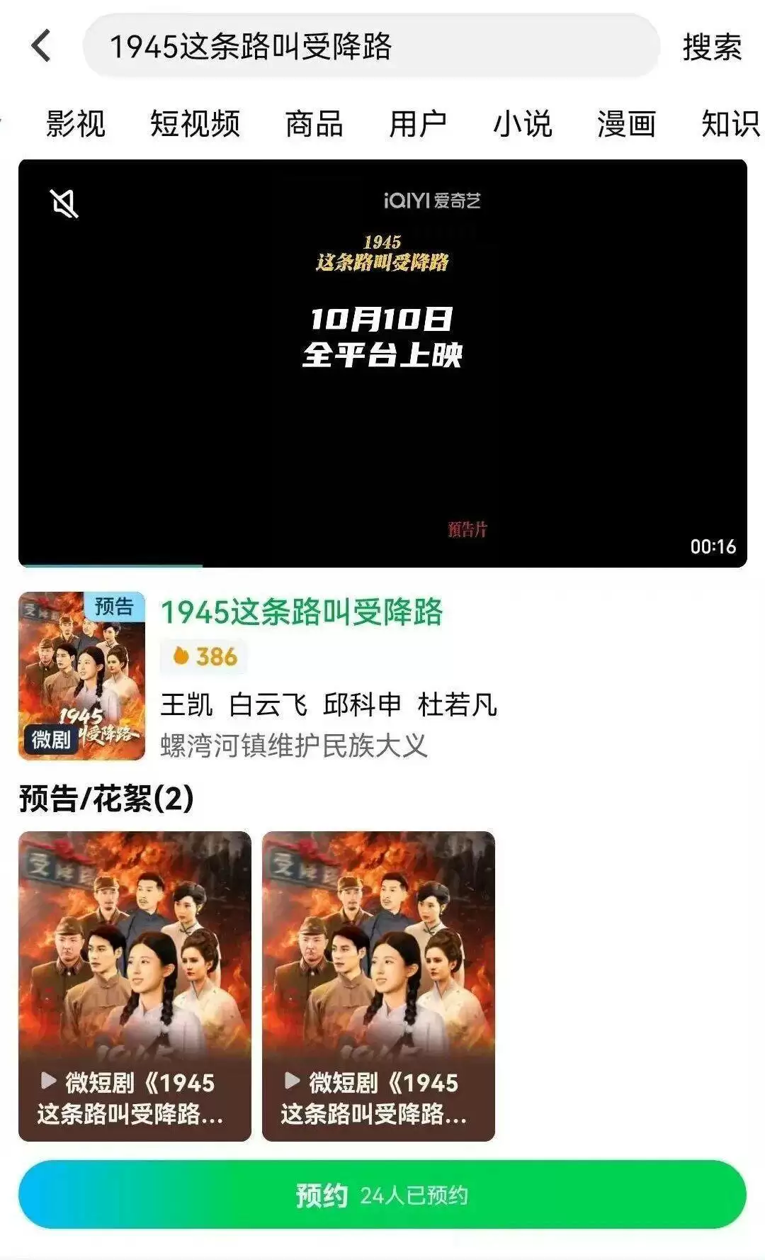 该剧将于2025年10月10日在红果短剧、爱奇艺、番茄小说、拼多多短剧、搜狐视频等平台同步播出。目前,各平台预约通道已全面开放,观众可前往搜索“1945这条路叫受降路”,点击“预约”即可享受首发观看权益。成功预约后,剧集上线将第一时间通知,确保不错过任何精彩内容。
