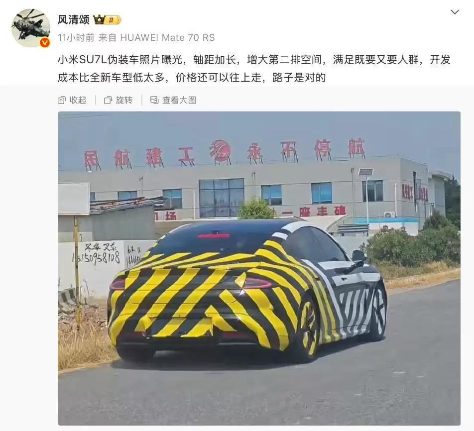小米SU7加长版路测亮相,轴距超3米1,雷军布局行政市场意在何为?