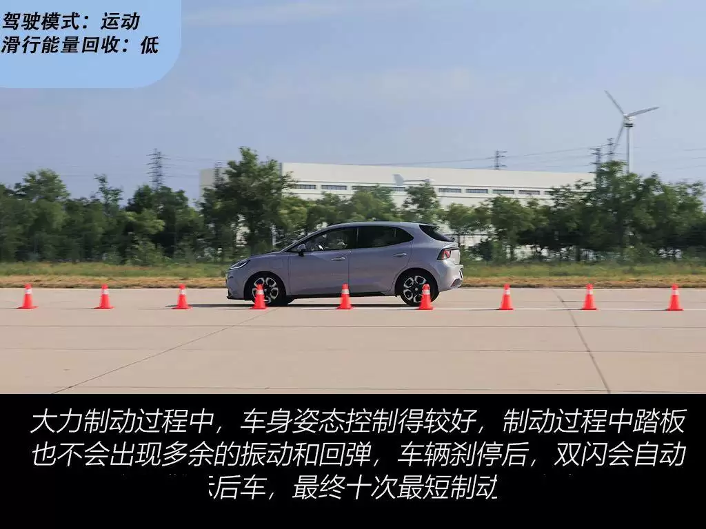 动力系统方面,MG4采用前置单电机布局,最大功率120千瓦,峰值扭矩250牛·米,匹配朝阳RADIAL RP76低滚阻轮胎。实测数据显示,其0-100km/h加速时间为8.02秒,0-400米加速用时16.07秒,尾速达138.17km/h。在连续多次加速测试中,动力输出稳定性表现突出,未出现明显衰减。制动系统采用前通风盘式+后盘式组合,100-0km/h最短制动距离仅36.77米,连续10次测试后最长制动距离为38.78米,热衰减控制优于同级车型。不过,朝阳轮胎在极限工况下易出现打滑现象,成为性能短板。