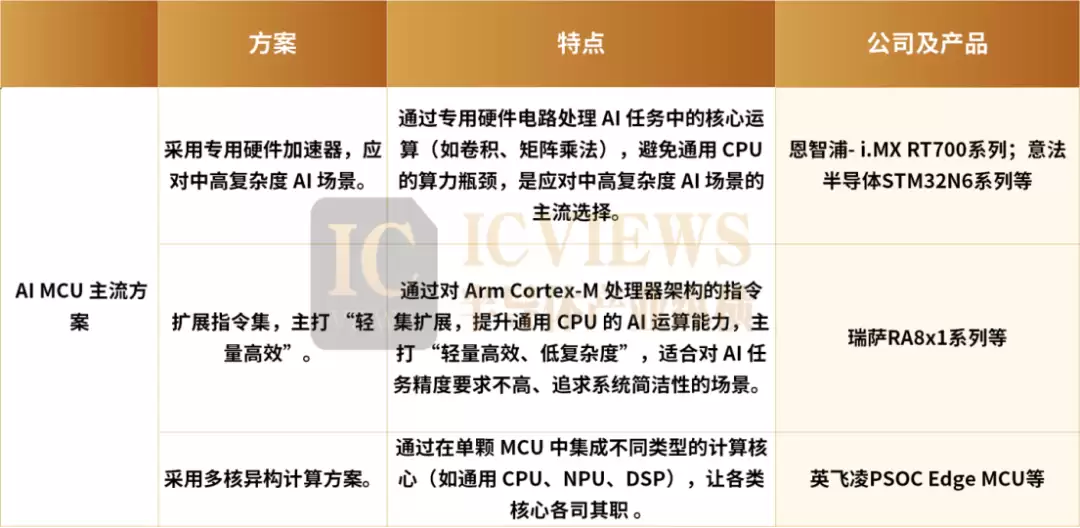 面对AI MCU的广阔市场,国际芯片巨头早已纷纷出手,通过不同技术路径打造核心竞争力,形成了三类主流方案: