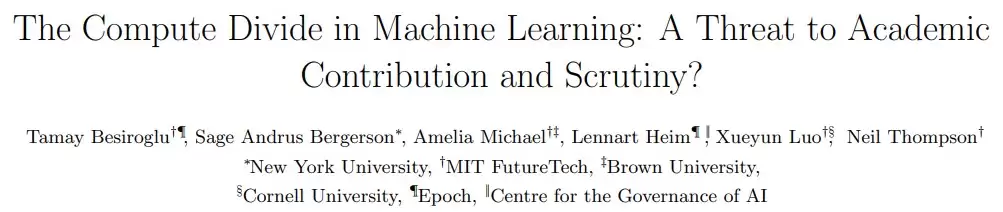 一项题为「The Compute Divide in Machine Learning: A Threat to Academic Contribution and Scrutiny?」 的研究指出,产业实验室与高校在 GPU 使用量上的差距正急剧扩大。