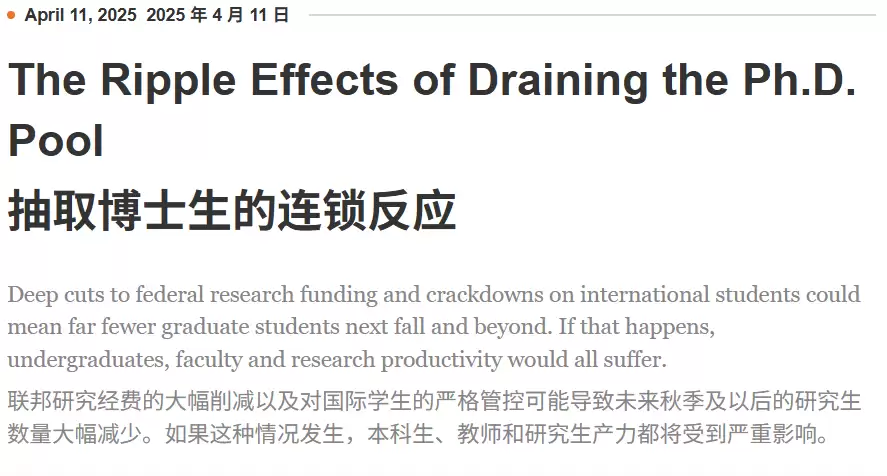 与此同时,美国部分大学正因为联邦科研经费不确定性而缩减PhD招生人数。