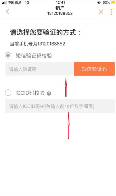 4、输入手机卡后边的19位数字或者直接通过手机验证码
