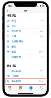 利用手机相册自带的回收站功能
