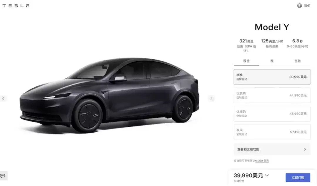 10月7日,特斯拉在美国推出了Model Y和Model 3的 Standard(标准版)车型,其中Model Y价格降到39990美元(约合28.47 万元),比现款便宜5500美元。标准版Model 3价格36990 美元(约合26.34 万元),比之前便宜5000美元。