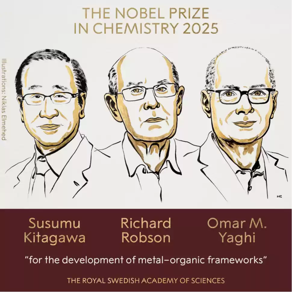 2025年10月8日,瑞典皇家科学院发布公告,美籍约旦裔化学家奥马尔·M·亚吉(Omar M. Yaghi)因在金属有机框架(MOF)材料领域的开创性贡献,与北川进、理查德·罗布森共同斩获诺贝尔化学奖。亚吉在机场转机时接到了这通来自瑞典的电话,周遭都是行色匆匆的旅客,获得诺奖的通知让他感到非常意外:“这种感觉实在太特别了,我很惊讶。”