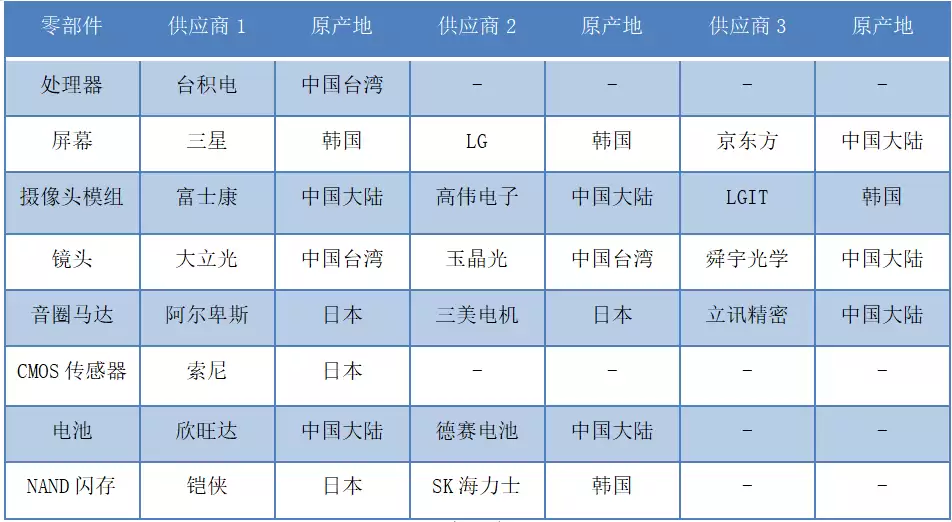 图:iPhone核心零部件供应商情况;资料来源:公开资料;