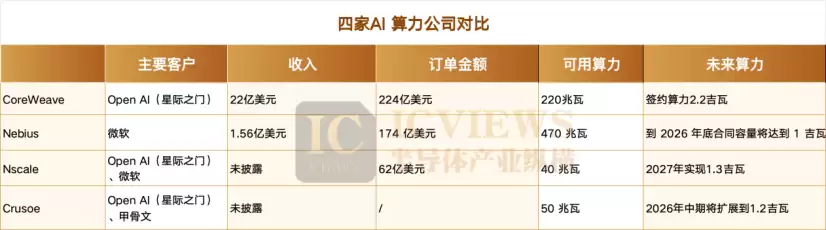 看准算力出租的新型企业不止CoreWeave一家,Nebius、Nscale、Crusoe都是其强有力的竞争者。