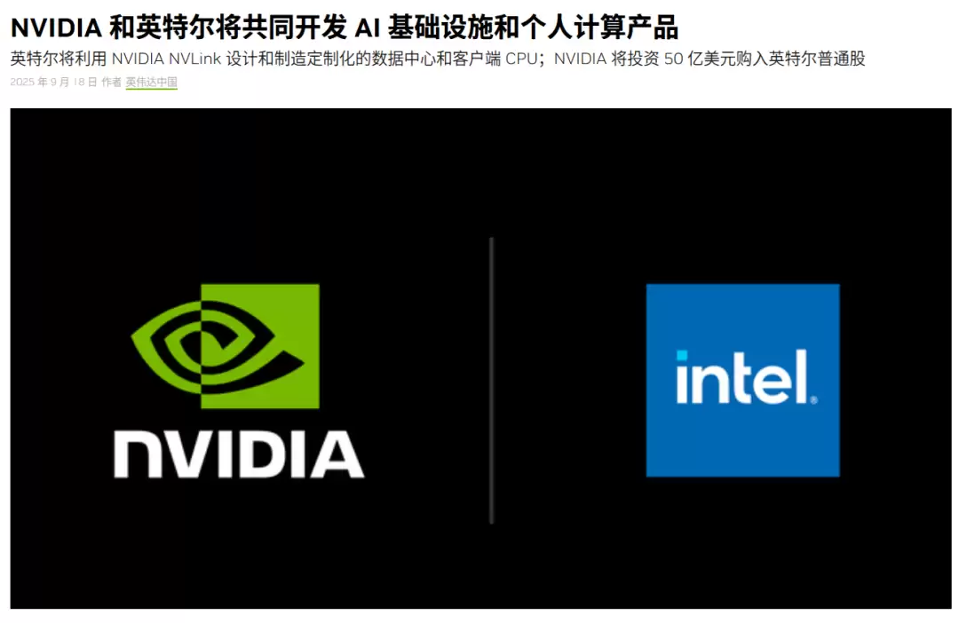 同样是上个月,英伟达还和英特尔宣布合作,共同开发多代定制数据中心和PC产品,以加速超大规模、企业级和消费级市场的应用程序和工作负载。英伟达将以每股23.28美元的价格向英特尔普通股投资50亿美元。