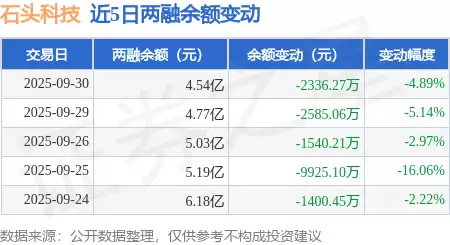 9月30日石头科技融资融券达4.54亿元,买入3616万元