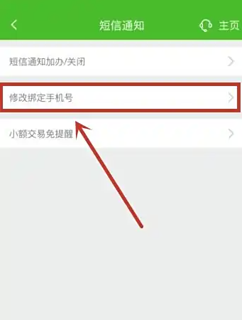 进入短信通知设置页面后,选择"修改绑定手机号"功能,按照系统提示完成手机号变更操作。