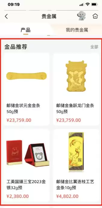 4. 浏览精选实物金品展示区,根据个人投资需求选择合适的贵金属产品点击购买