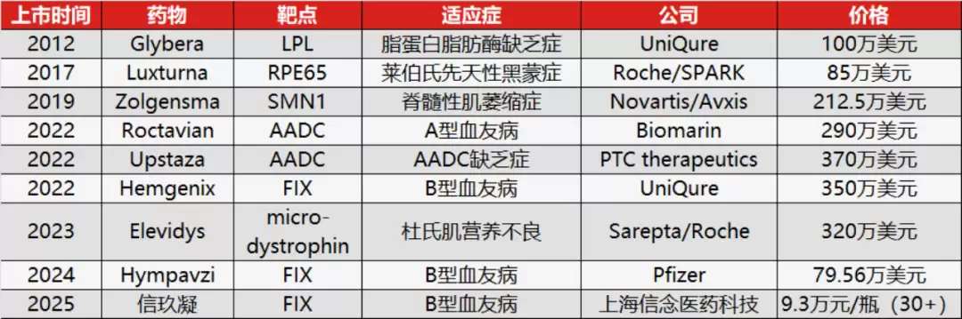 最直观的结果就是,目前上市的AAV基因治疗药物定价都在百万美元级别,甚至Hemgenix、Upstaza和Elevidys均突破了300万美元。