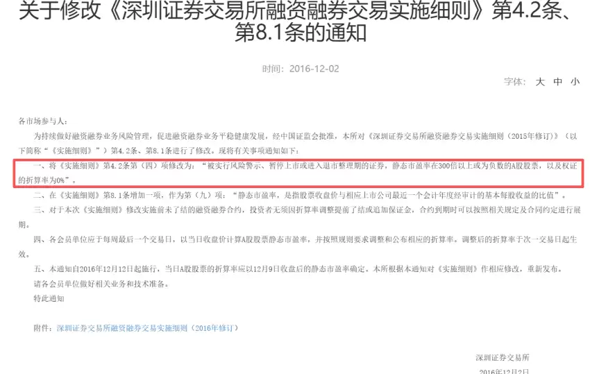 多家券商明确表示,此次调整为执行交易所规则的常态化操作。回溯2016年12月,沪深交易所修订《融资融券交易实施细则》,明确规定静态市盈率超300倍或为负值的股票折算率必须下调为零。