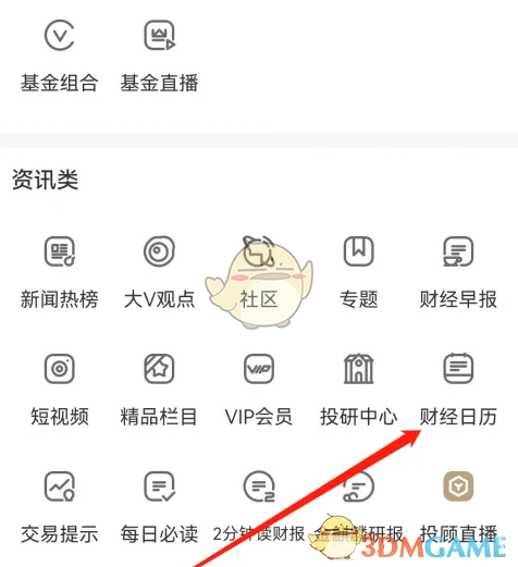 3、在展开的功能菜单中选择【财经日历】,就能查看专业的财经事件安排表了。