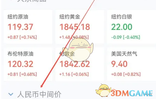 4、进入外汇板块后,点击"人民币中间价"即可查看详细汇率信息