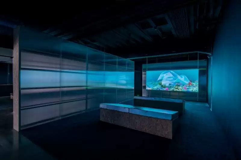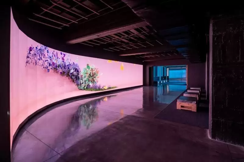 宇宙万物作品《奔流永续》,4K视频,3分钟循环播放,2020年。现代汽车委托创作