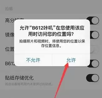 手机位置共享打开之后,再次打开B612咔叽相机,点击允许B612咔叽相机访问您的位置