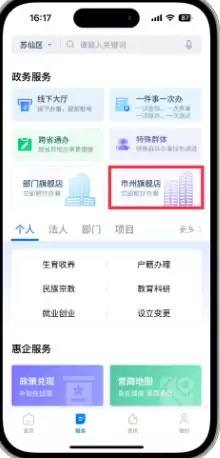 1、打开“湘易办”APP登录后,在服务页点击“市州旗舰店”