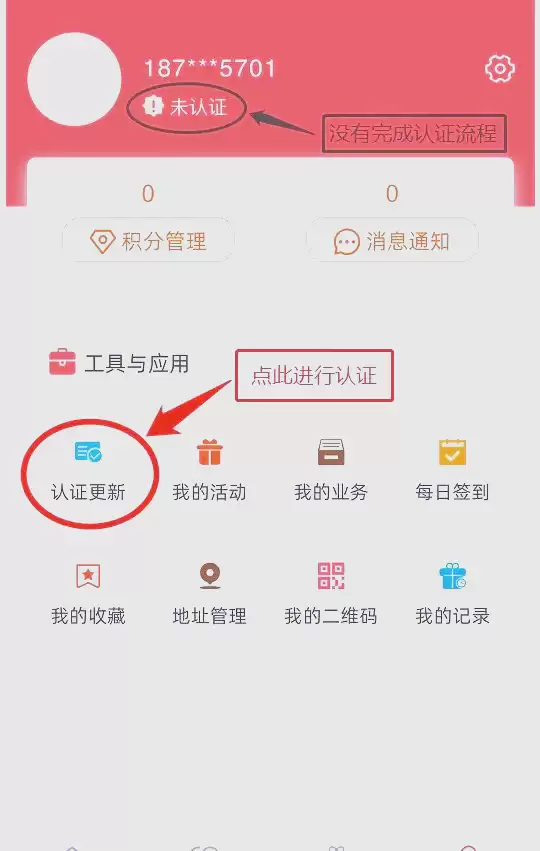 登录后会进入APP首页,找到底部导航栏的"我的"入口点击进入。在个人中心页面中,可以看到"认证更新"的功能模块,点击这里就能开始进行身份认证。