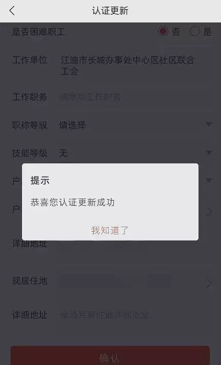 填写完所有资料后,请仔细核对每一项内容。确认无误后在页面底部点击"确认"按钮,就能完成信息更新和认证。