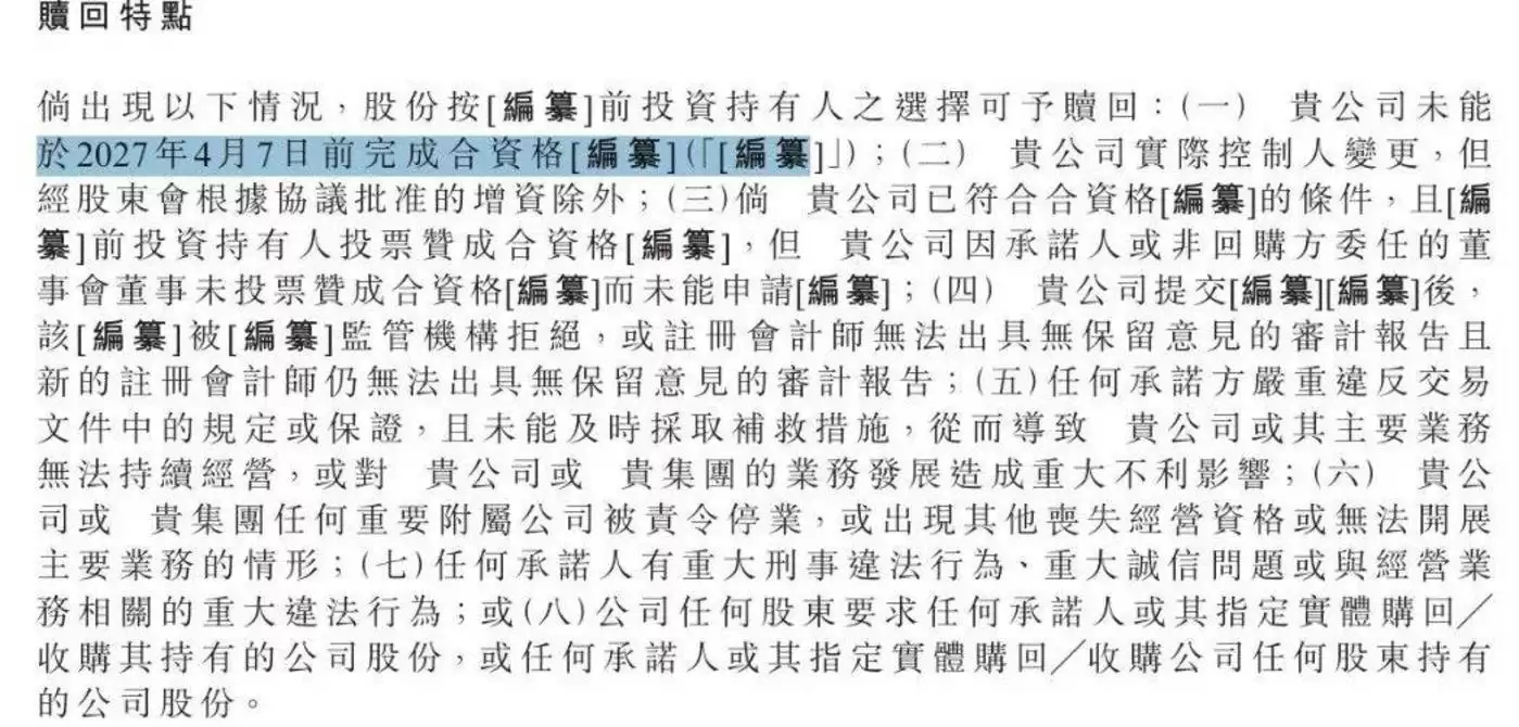尽管先为达生物此前曾获得资本青睐并完成多轮融资,但公司与投资人同步签订了赎回协议,条款明确约定:若公司未能在2027年4月7日前完成上市,相关投资人有权选择启动赎回程序。