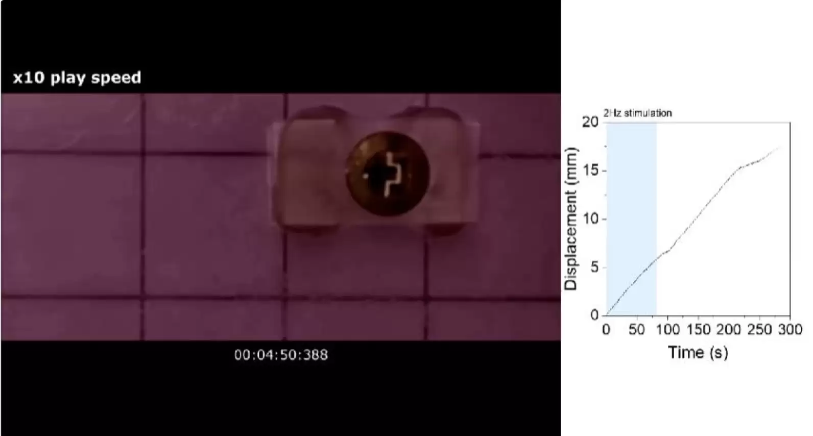 例如,给它一束光,它就能自主爬行,在光刺激停止后,它并不会立即停下,而是能继续爬行长达20分钟,仿佛其神经元记住了刚才的指令,也展现出生命系统特有的短时程可塑性。