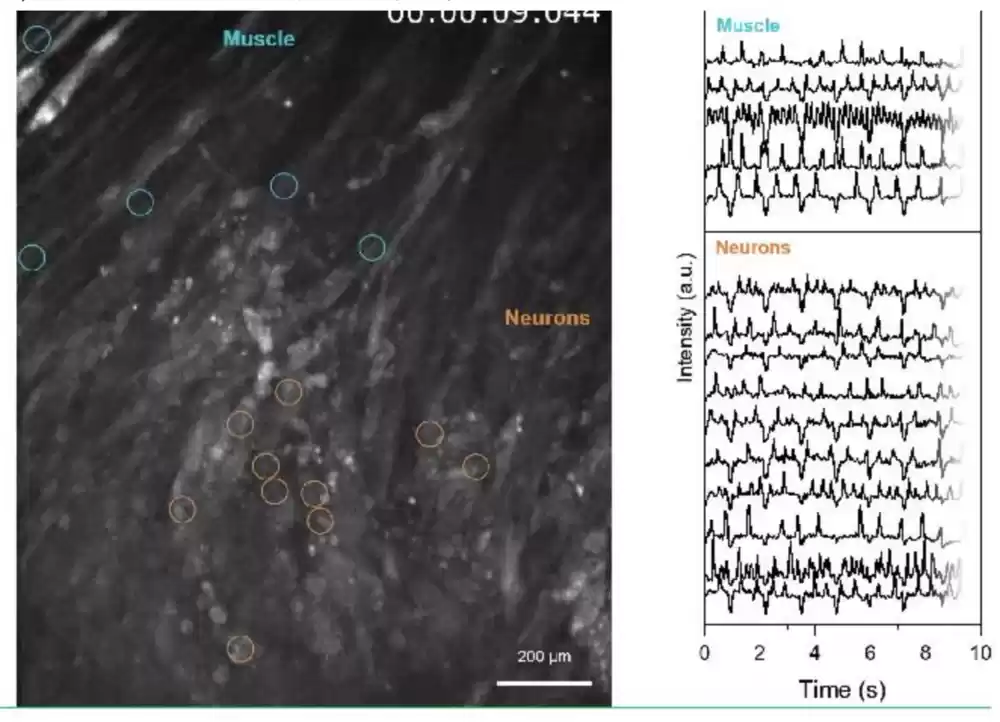 在支架之上,研究团队培育了两个核心生命单元,分别是经过光遗传学改造的神经元与骨骼肌组织。