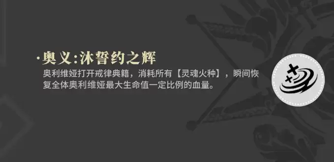 奥利维娅的终极技能需要消耗积攒的所有灵魂火种发动。当她翻开手中典籍的那一刻,将为全队带来根据自身生命值比例计算的群体治疗。这种既能自保又能团队支援的特性,让她成为了游戏中最值得培养的辅助型角色之一。