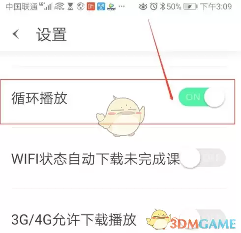 4、最后在设置界面开启"循环播放"功能开关即可。