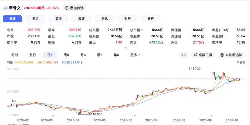 2025年10月6日当天,AMD股价开盘后直接跳涨超过30%,最高触及215美元每股,最终收涨23.71%。