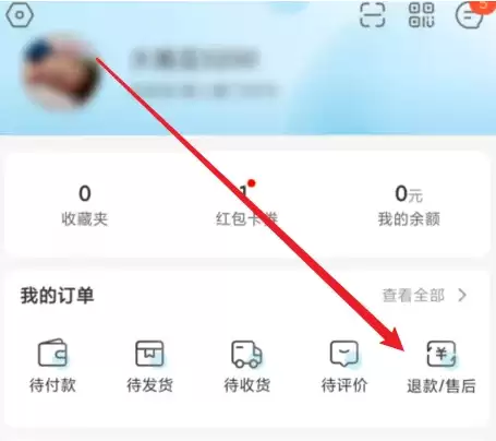 在我的页面中找到"退款/售后"功能入口,点击即可查看订单并申请退款