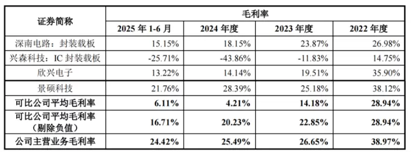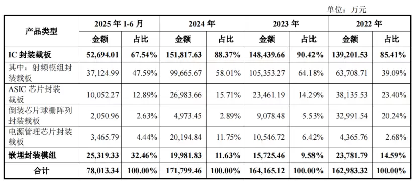 2024年和2025年1-6月,受消费类等应用市场竞争、下游市场需求等影响,射频模组封装载板、倒装芯片球栅阵列封装载板等产品销售价格下降。