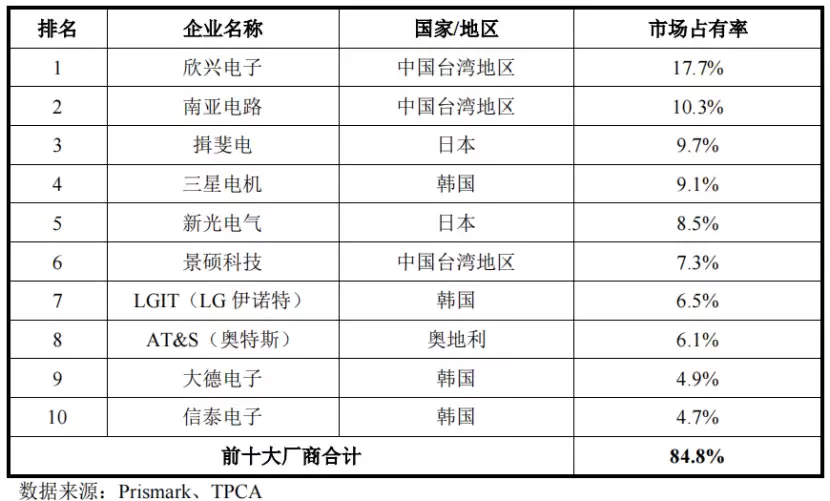 2024年全球前十大封装载板厂商,来源:招股书