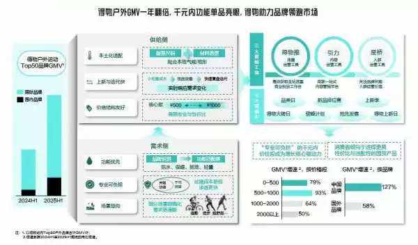 Z世代的新消费特征为品牌提供了新增长动力。《报告》显示,猛犸象、迪桑特、可隆、萨洛蒙、凯乐石、骆驼、伯希和等1300多个户外品牌在得物App通过新品、新玩法快速打开市场,并推动热度向长期销量转化,完成从爆款到经典的代表作沉淀。2025年至今,得物户外行业GMV同比去年增长了100%。