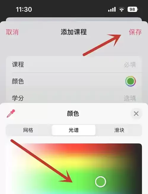 在新增课程界面中,找到并点击"颜色"设置选项。